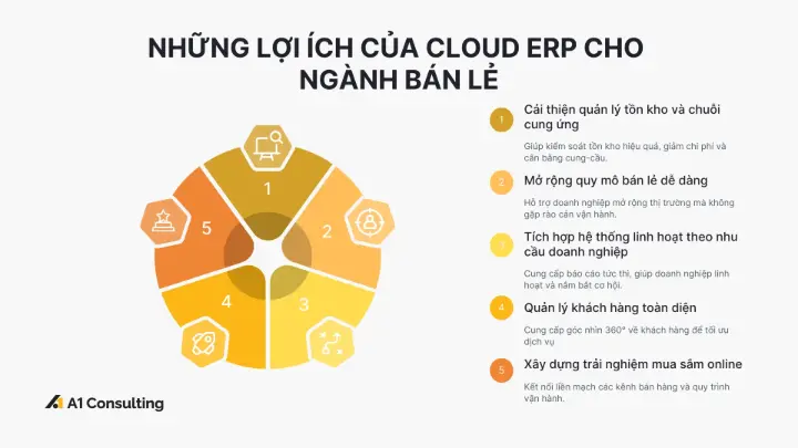 Dưới đây là những lợi ích chính của Cloud ERP cho doanh nghiệp bán lẻ:
