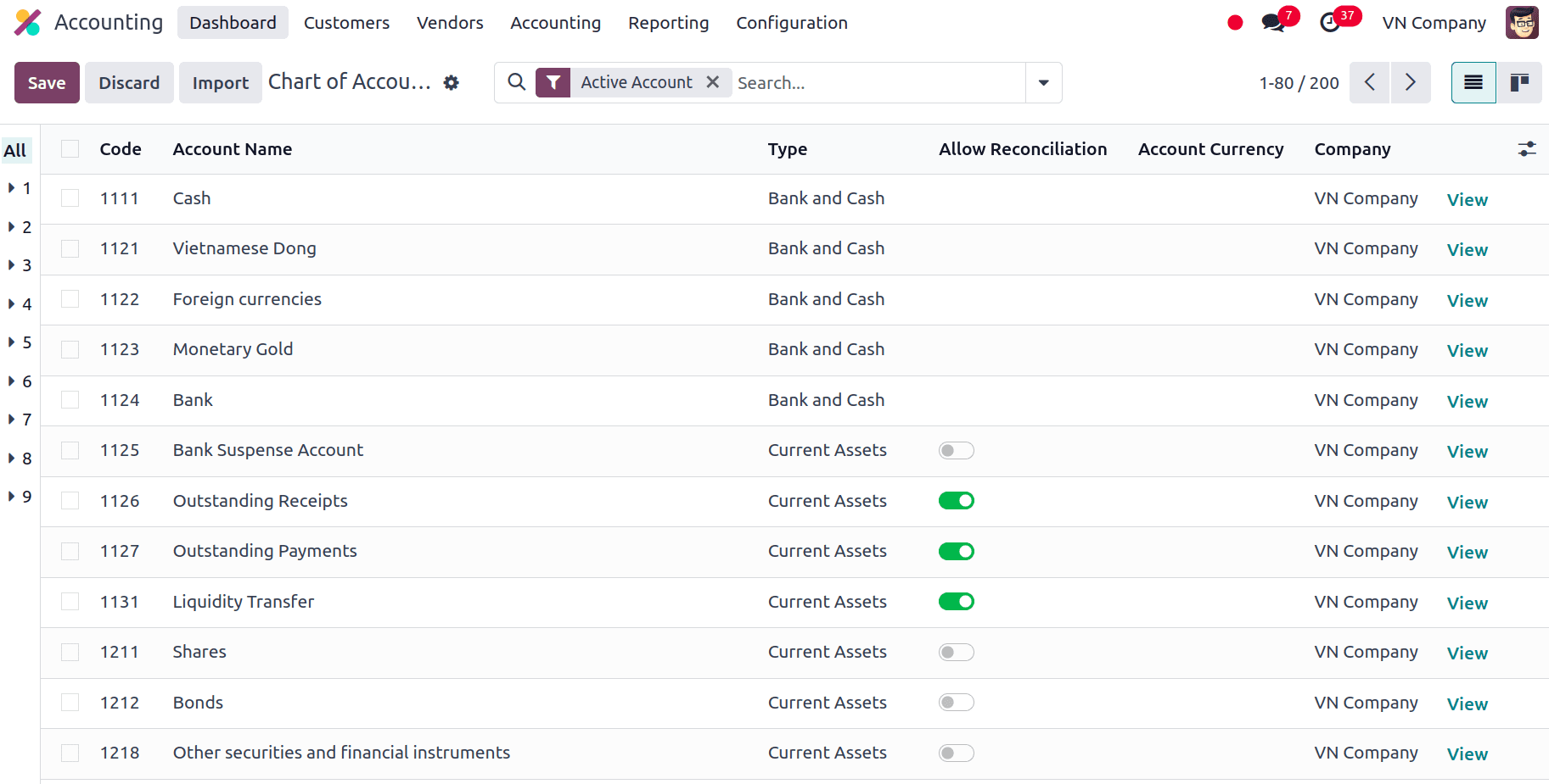 Hệ thống tài khoản kế toán (Chart of Accounts - COA) trong Odoo là một thành phần quan trọng trong quản lý tài chính, giúp tổ chức và phân loại tất cả các giao dịch tài chính. Nó đảm bảo việc thu thập và báo cáo dữ liệu tài chính chính xác cho hệ thống kế toán. COA tạo ra một khung hệ thống để nhóm các tài khoản như tài sản, nợ phải trả, thu nhập và chi phí, giúp việc quản lý tài chính trở nên rõ ràng và hiệu quả hơn.