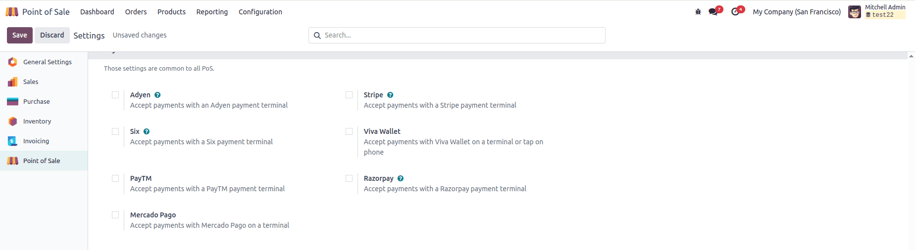 Nếu bạn sử dụng thiết bị chấp nhận thẻ, có thể cấu hình Payment Terminals (thiết bị thanh toán) trong phần Settings.