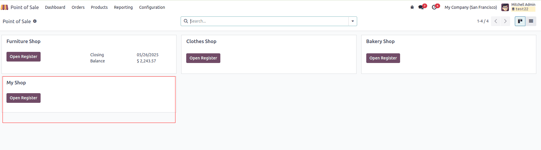 Sau khi hoàn tất các thông tin cần thiết, nhấn Save để lưu lại và quay về bảng điều khiển POS (POS Dashboard), nơi bạn sẽ thấy cửa hàng vừa tạo.