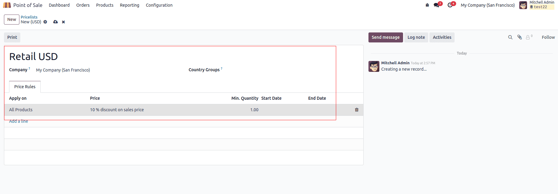 Ví dụ: bạn có thể chọn hoặc tạo bảng giá riêng như "Retail USD", phù hợp với chính sách bán hàng của cửa hàng.