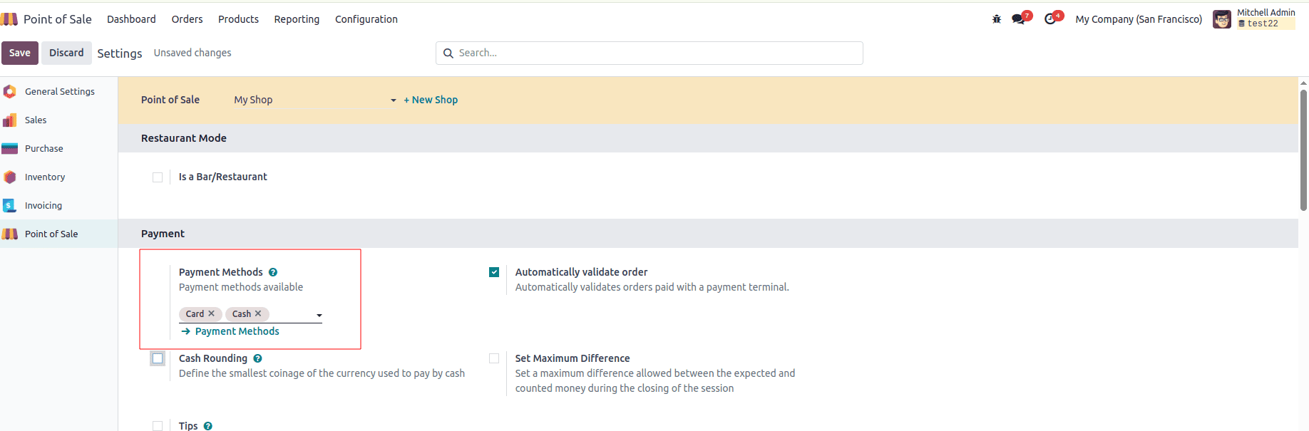 - Tạo phương thức tùy chỉnh bằng cách nhấp vào liên kết Payment Methods nếu cần