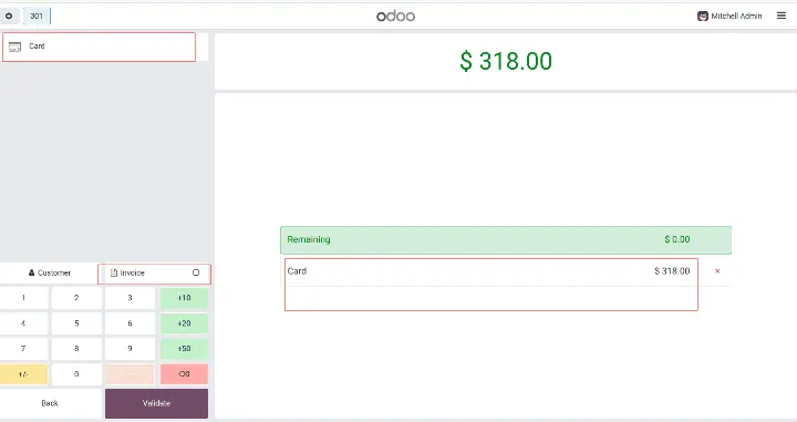 - Nhập số tiền thanh toán và nhấn Validate (Xác nhận).