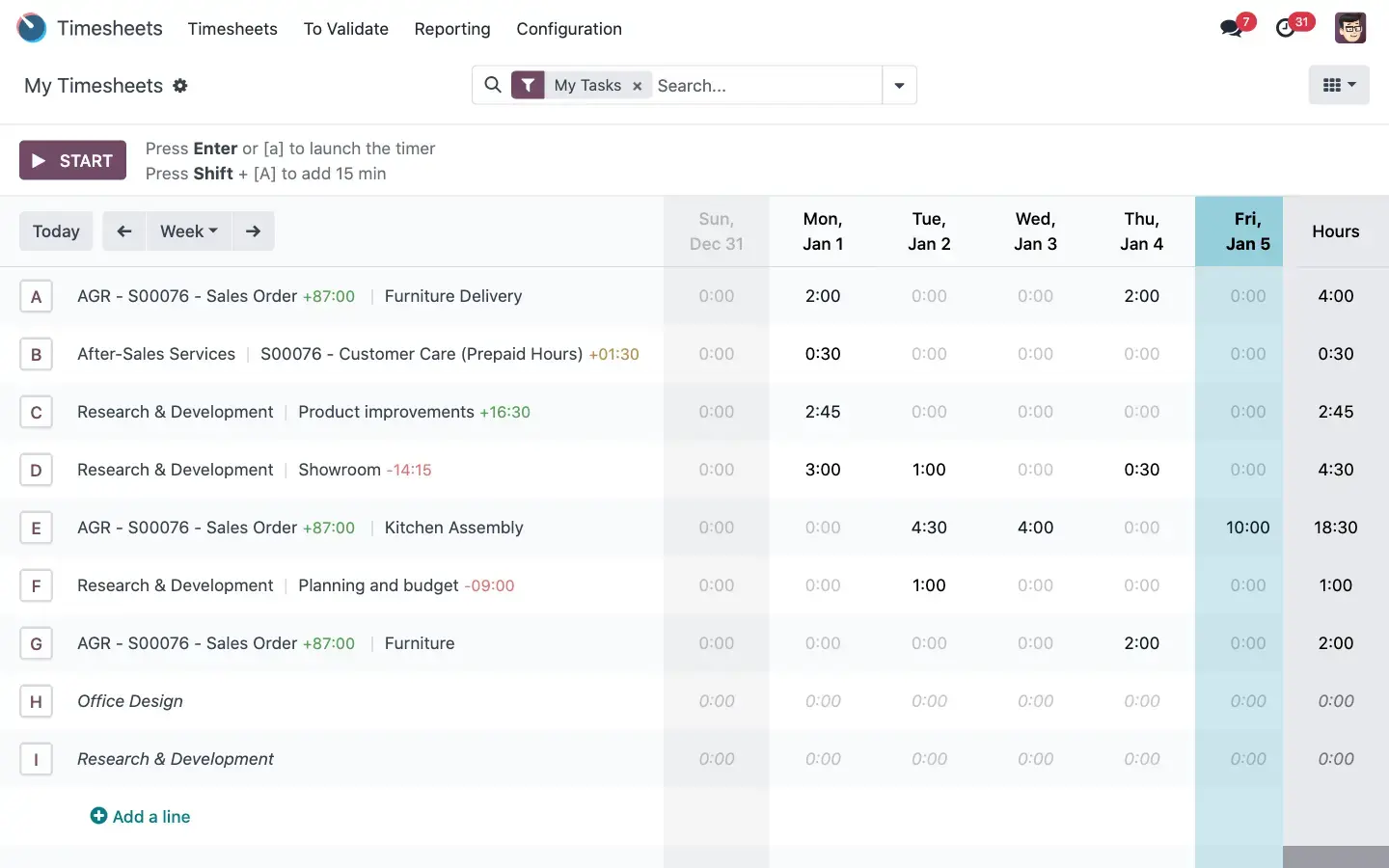 Với các công ty bán giờ công (time-based service), Odoo Timesheet cung cấp những tính năng: