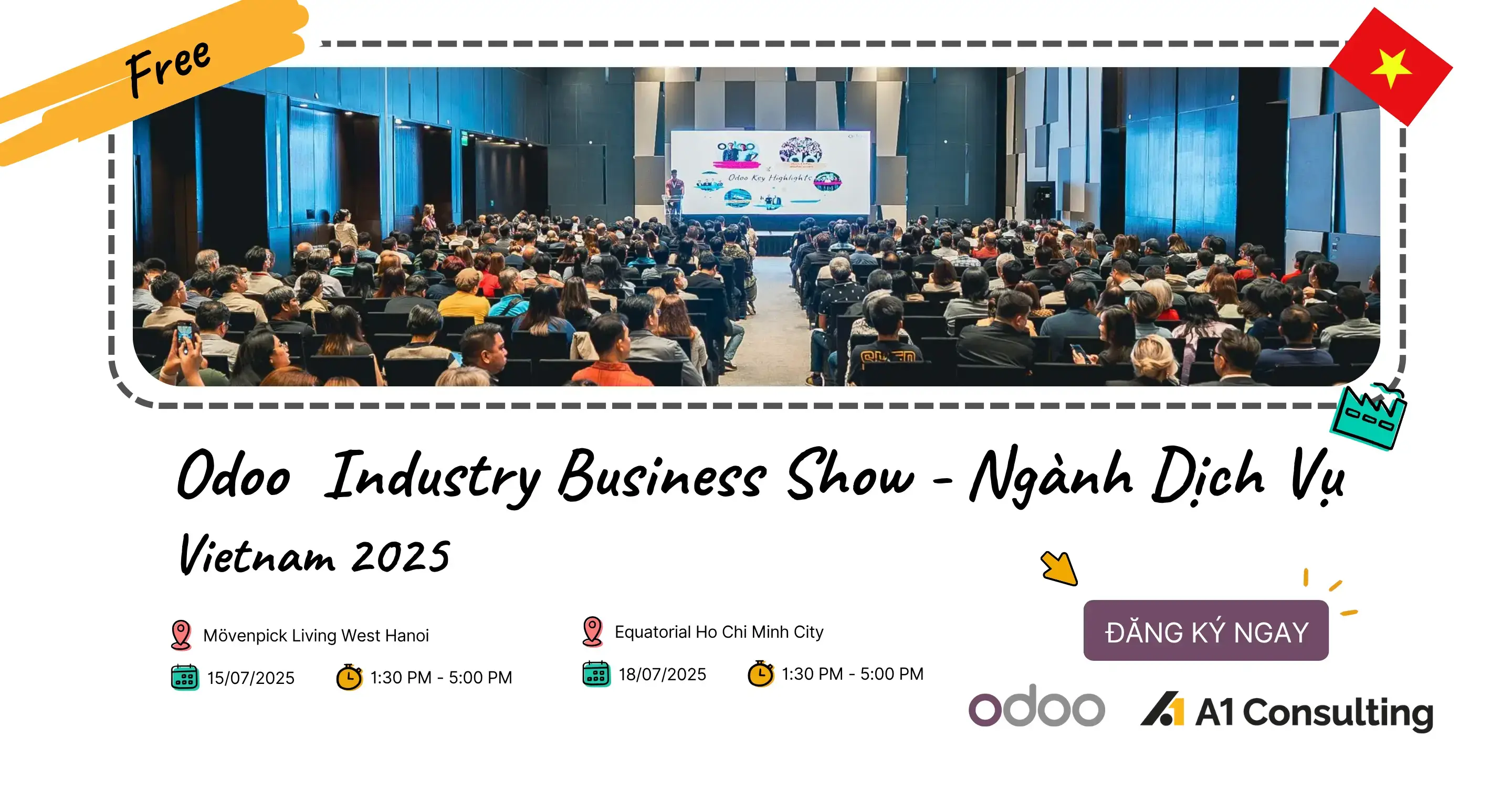 Để hiểu rõ hơn cách Odoo có thể hỗ trợ doanh nghiệp dịch vụ chuyển đổi số và nâng cao hiệu quả vận hành, bạn có thể trực tiếp trải nghiệm hệ thống tại sự kiện: Odoo Industry Business Show Vietnam 2025 – Ngành Dịch Vụ do A1 Consulting phối hợp tổ chức với vai trò đối tác tài trợ chính.
