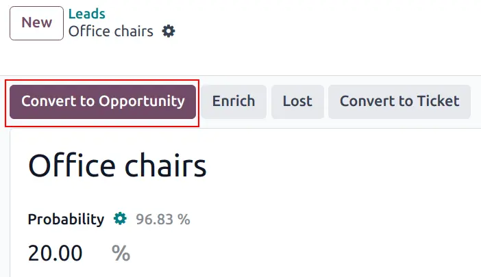 Nhấp vào nút Convert to Opportunity ở góc trên bên trái của trang.