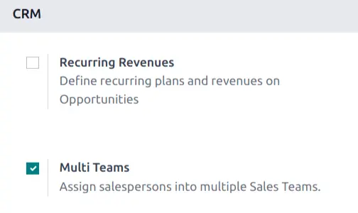 - Trong phần CRM, đánh dấu vào ô Multi Teams.
