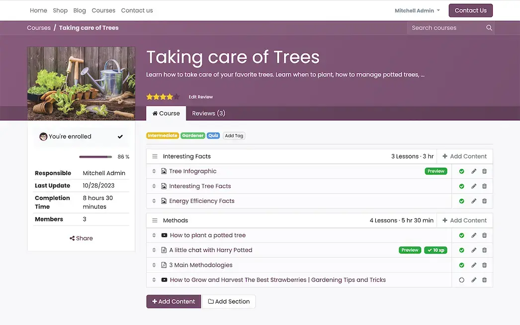 - Tạo khóa học đa định dạng: Cho phép giảng viên xây dựng nội dung khóa học từ video, slide, PDF, bài trắc nghiệm, bài tập tự luận.